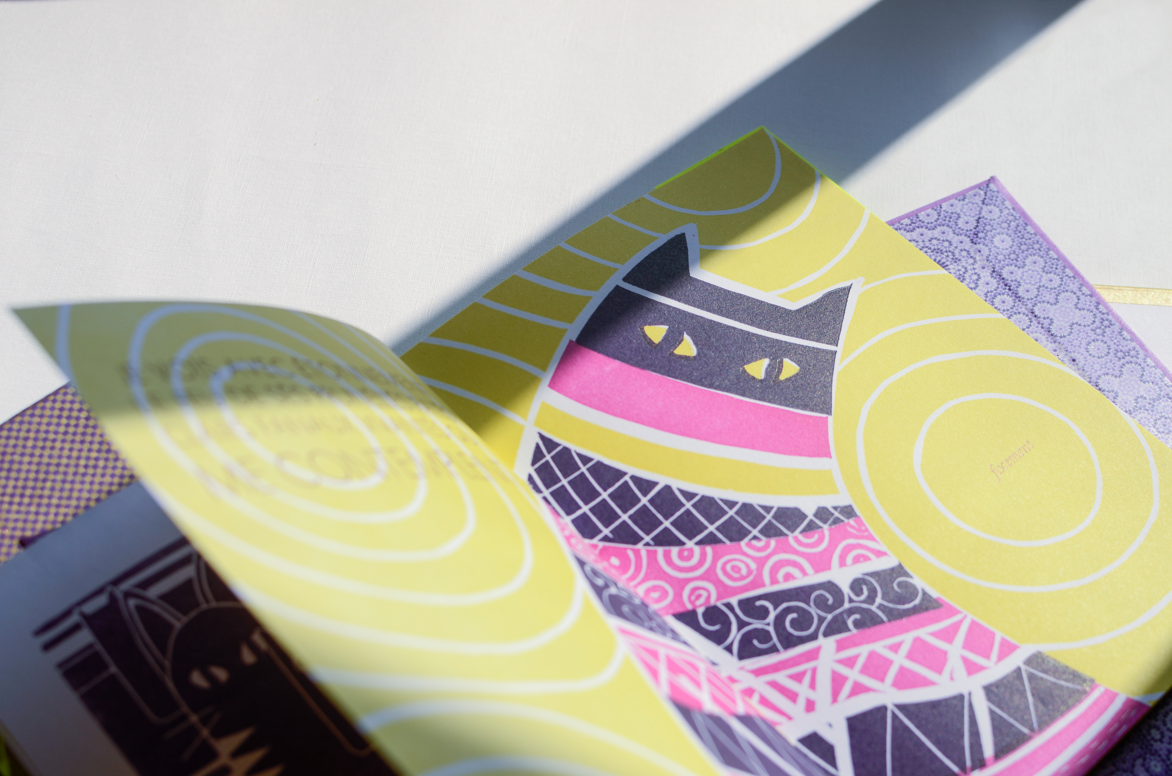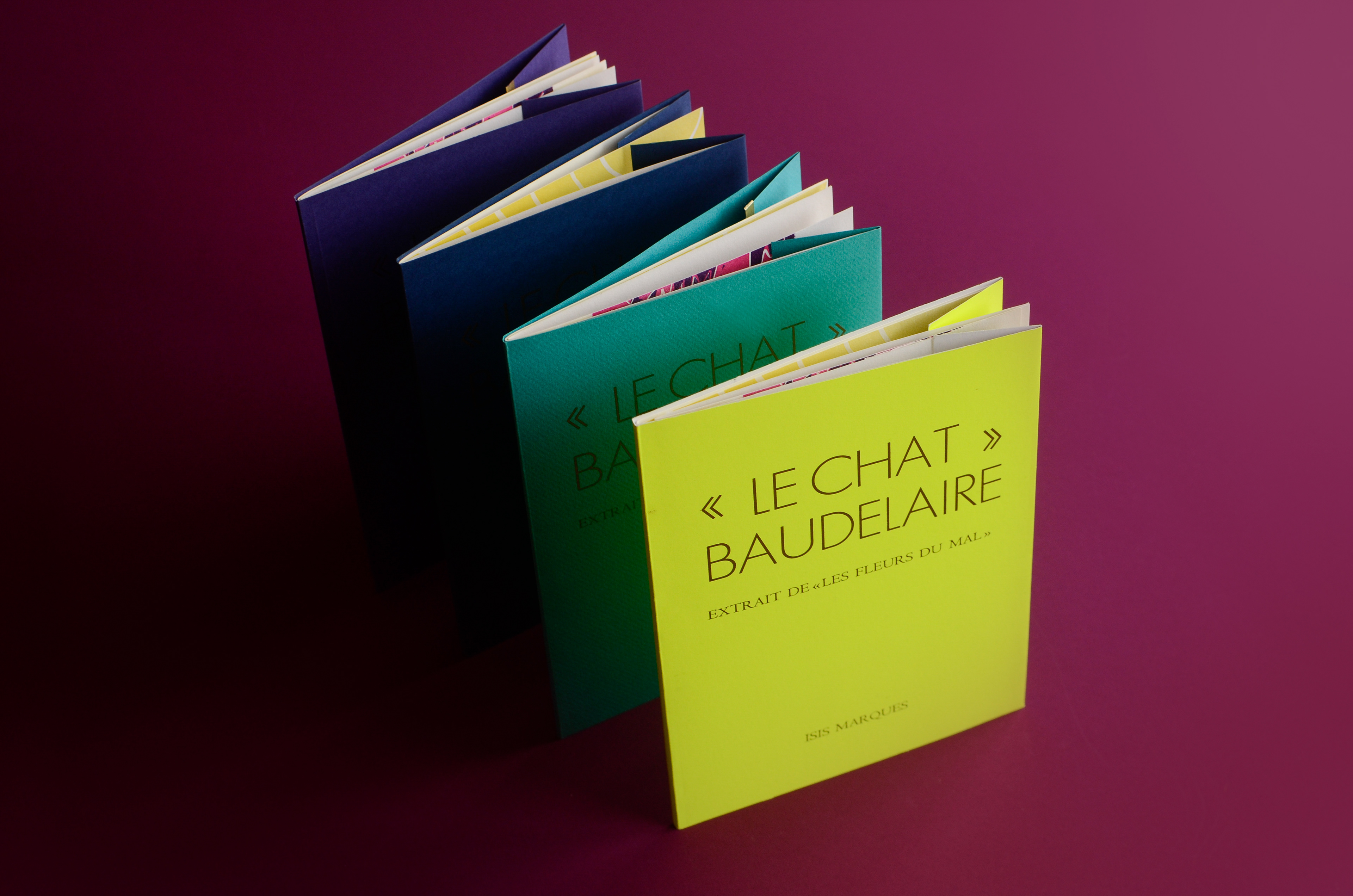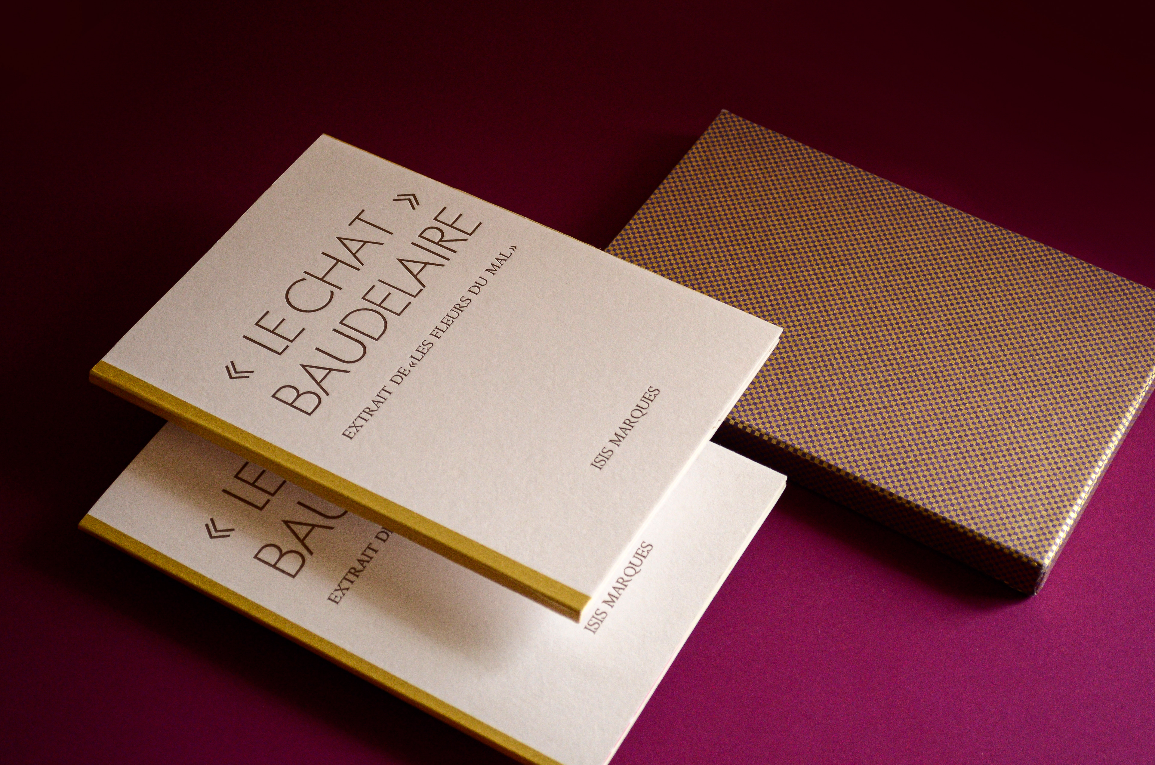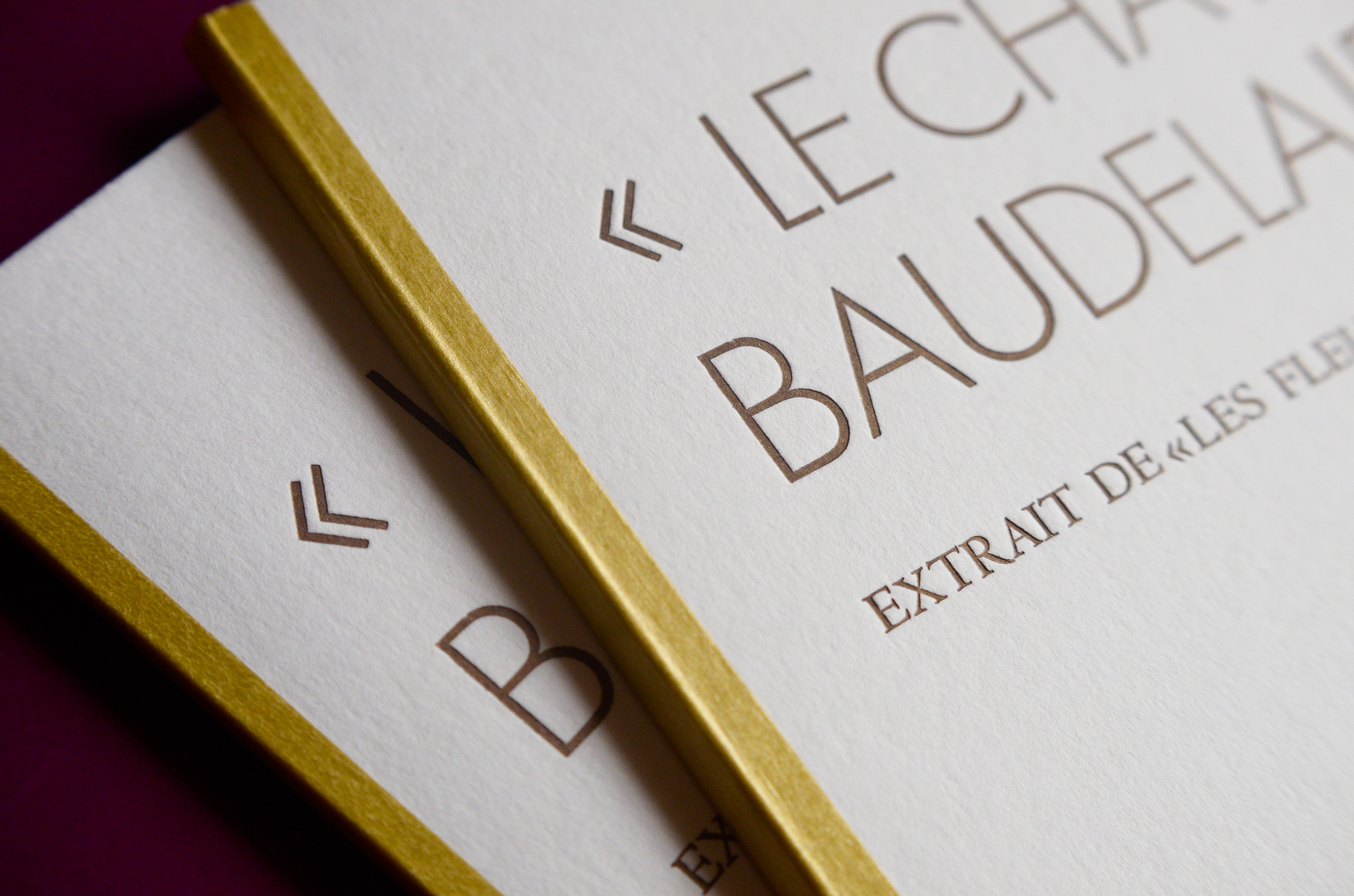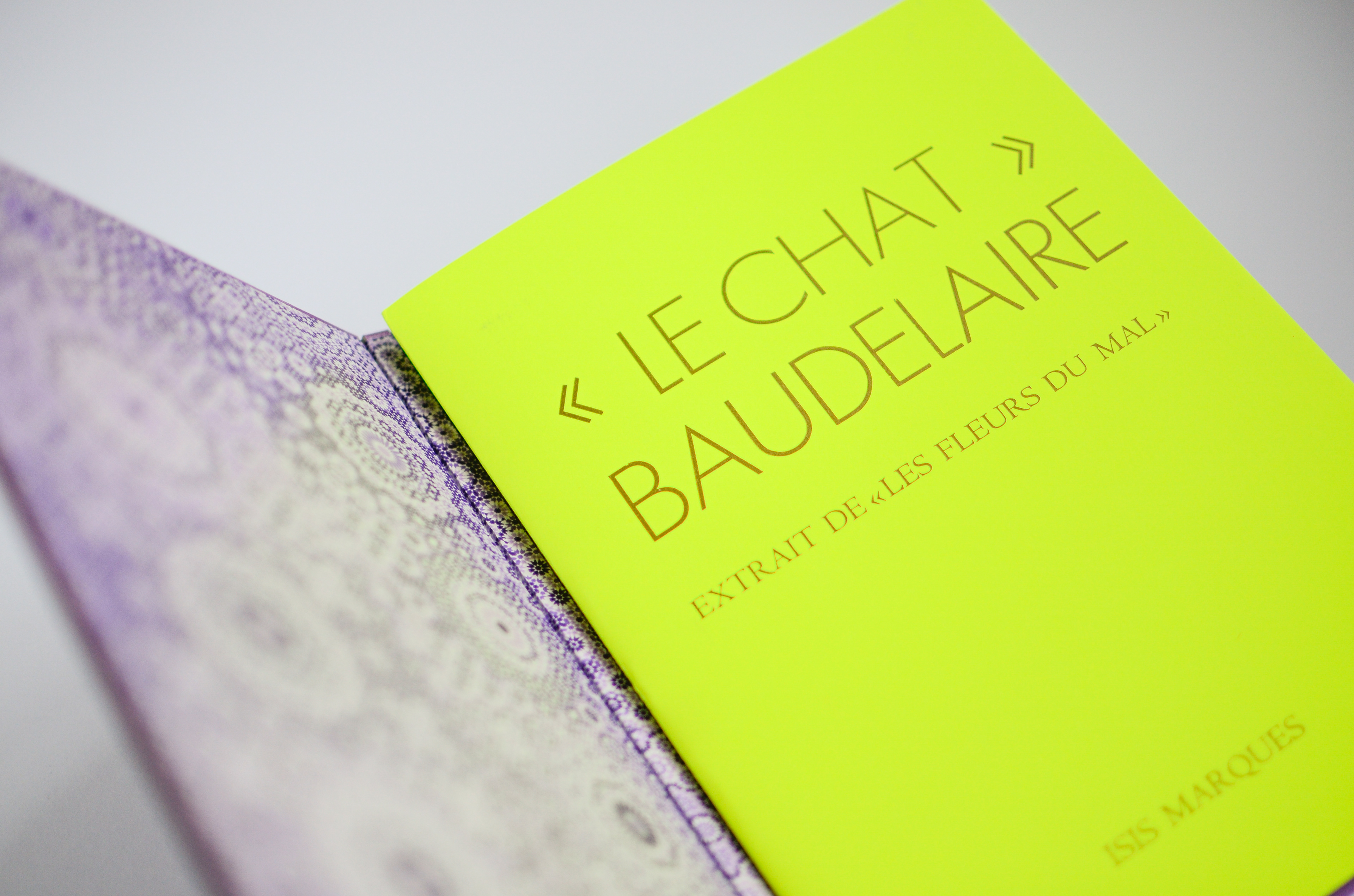 Each student creates a unique and entirely handmade book. My chosen one was "The Cat" (Le Chat) published in 1857 by the poet Charles Baudelaire. Originally part of the book "Les Fleurs du Mal" (The Flowers of Evil) this poem was the first I read in French. I was 12 years old and found it in the library. I was intrigued by the title and translated it word-by-word using a dictionary. Hard were those days without google translate.
