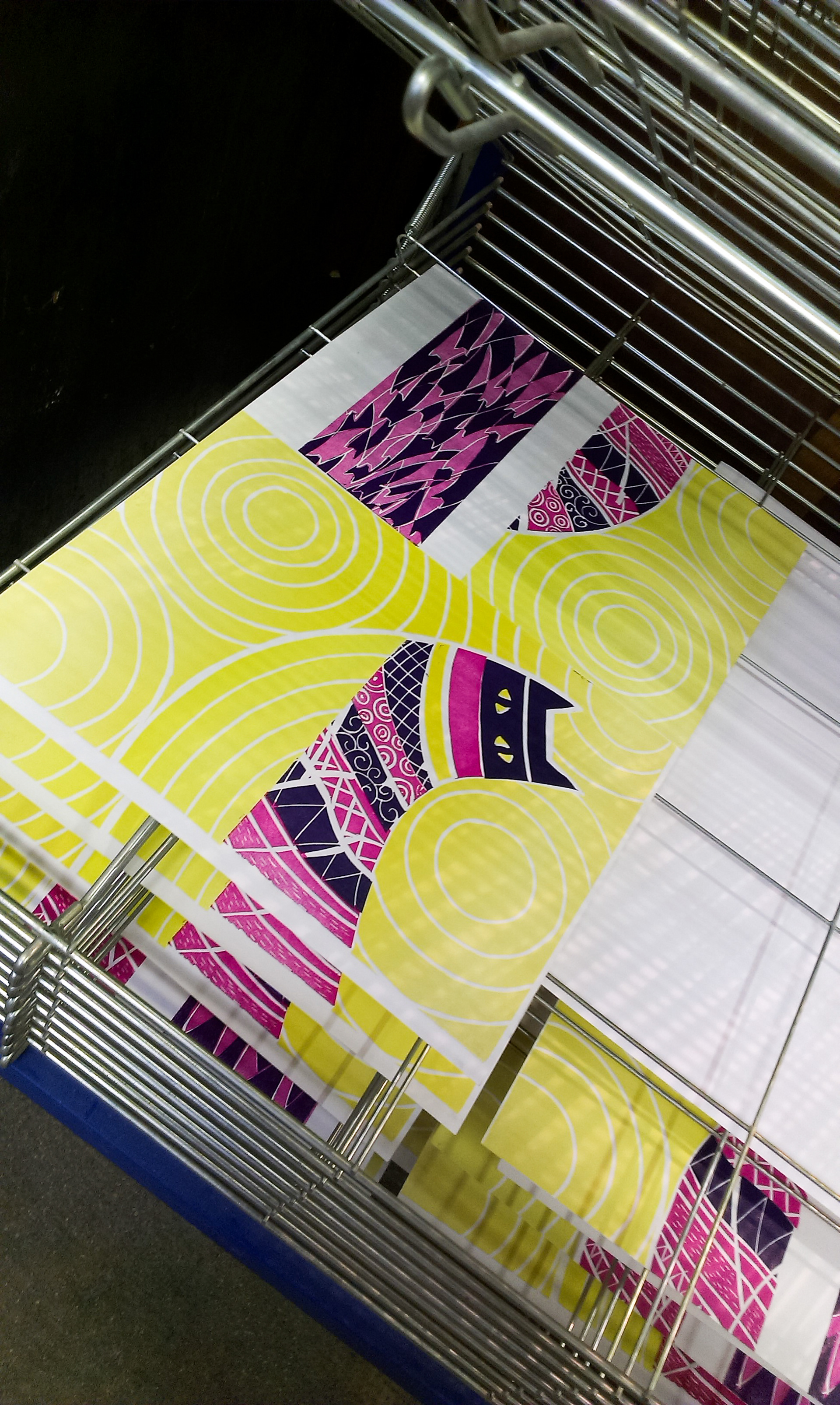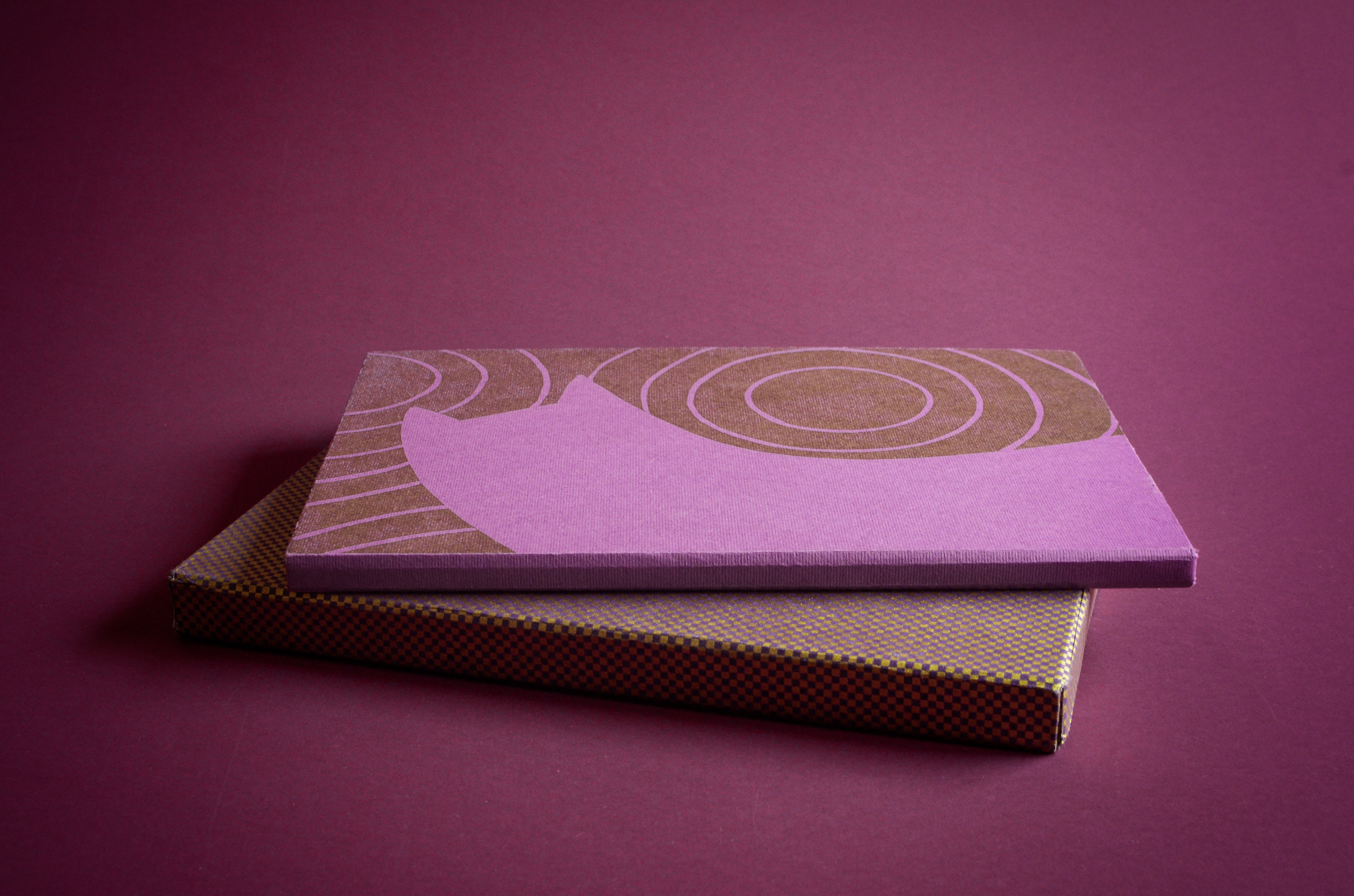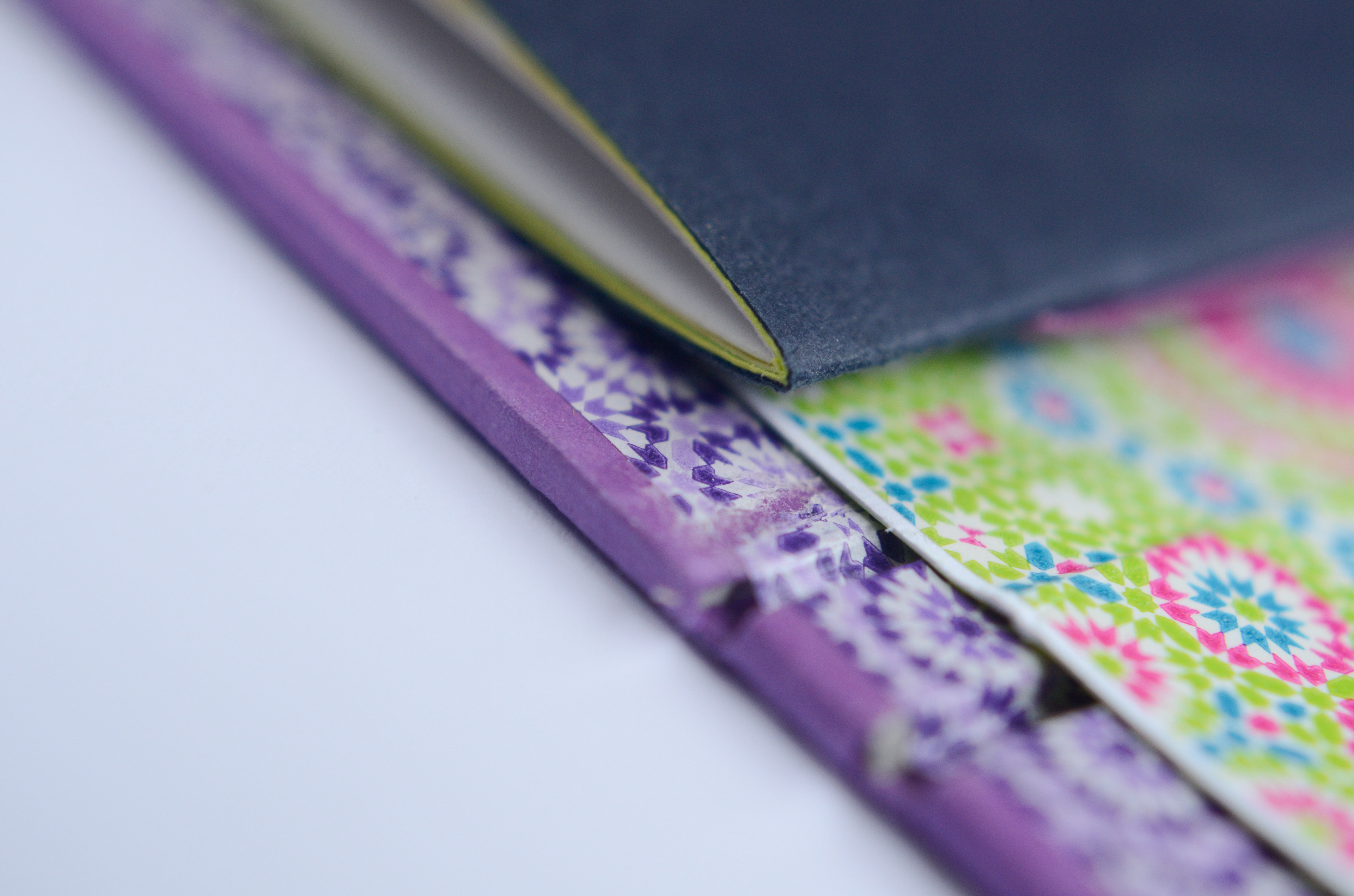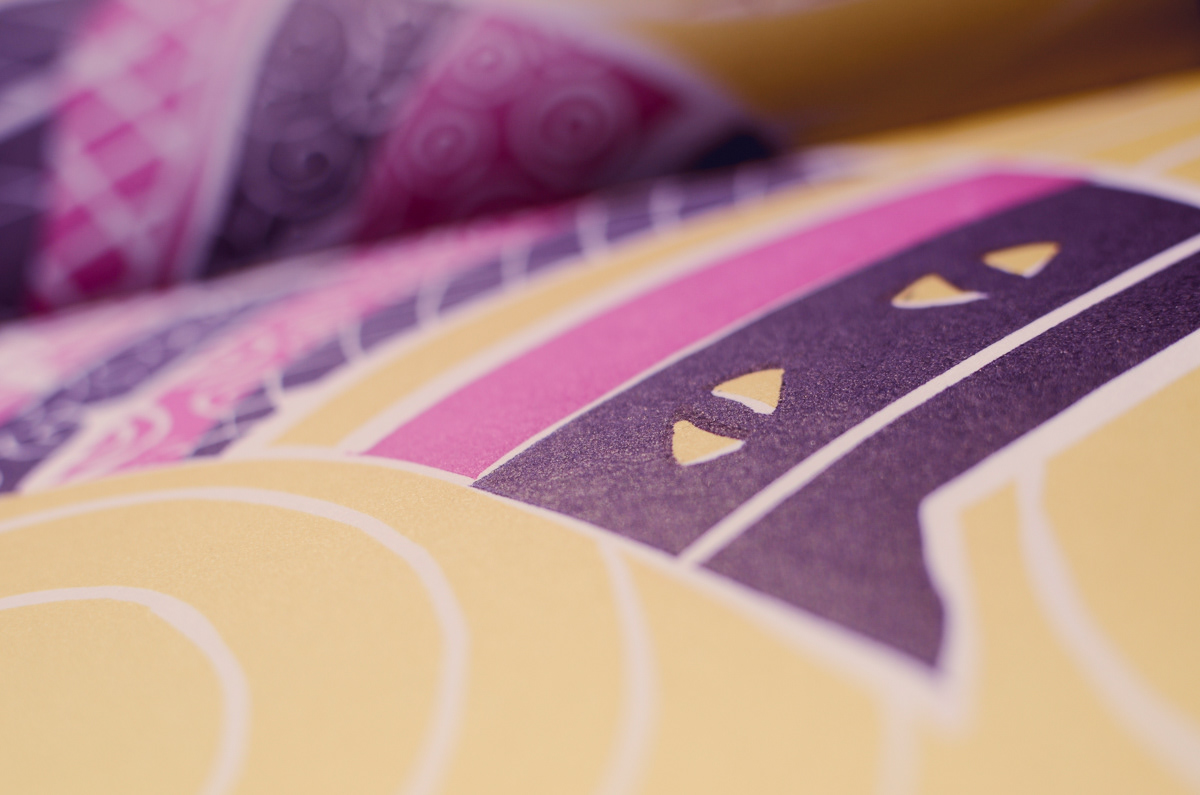 The ancient-gold color was composed using a mix of magenta + gold. The purples are composed of magenta and deep blue. All the papers were found with love a little here and there in parisian paper stores: Rougier&Plé (yellow,purple and blue), Le Géant des Beaux Arts (turquoise, cardboards) et L'Art du Papier (checkered pattern).