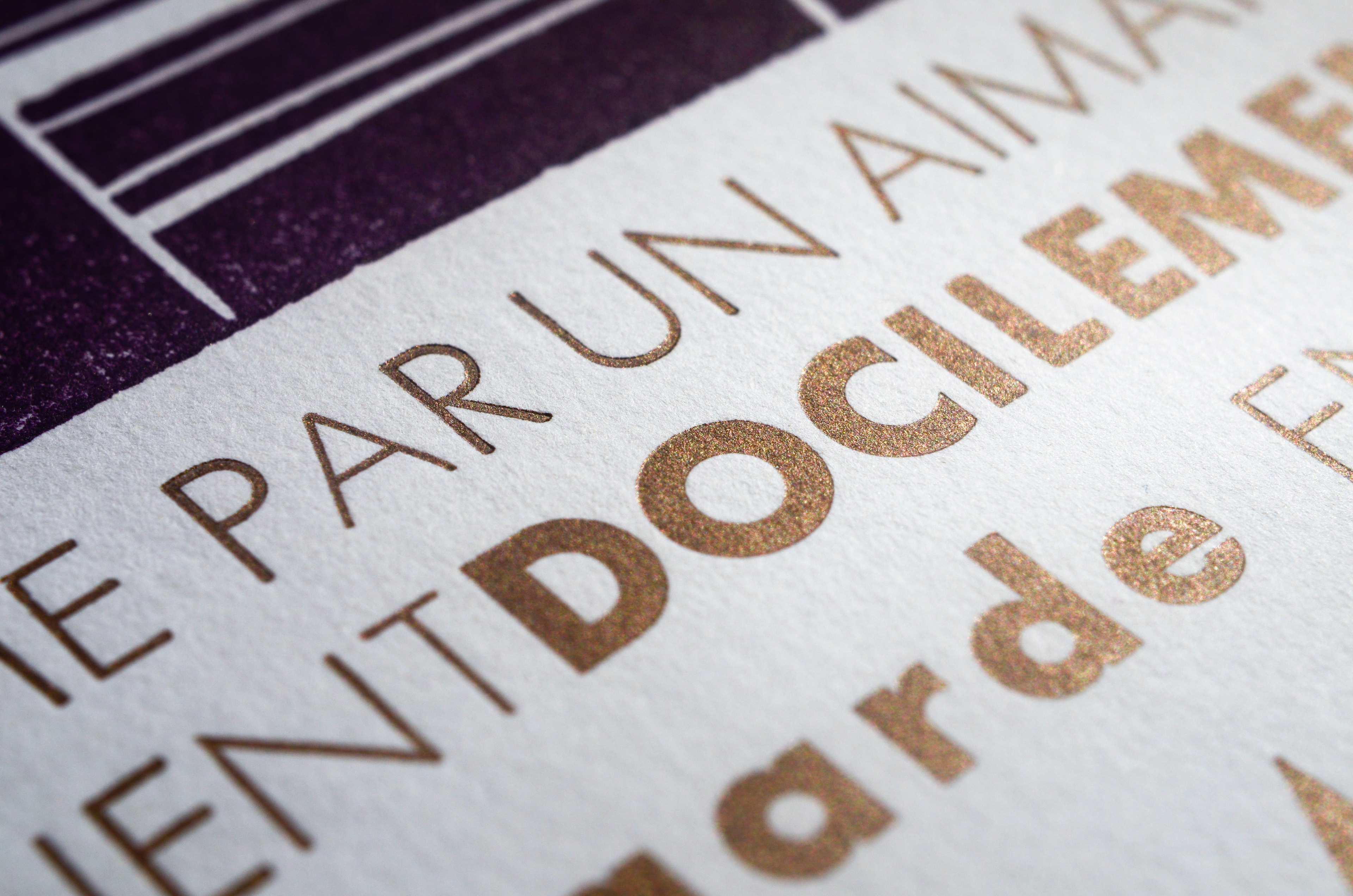 The body was composed using original metal typos of different sizes of the "EUROPA" font family. A digital version was designed by swiss designer Fabian Leuenberger in 2011. The sub-titles, colophon and signature were composed in Garamond 24pt.
