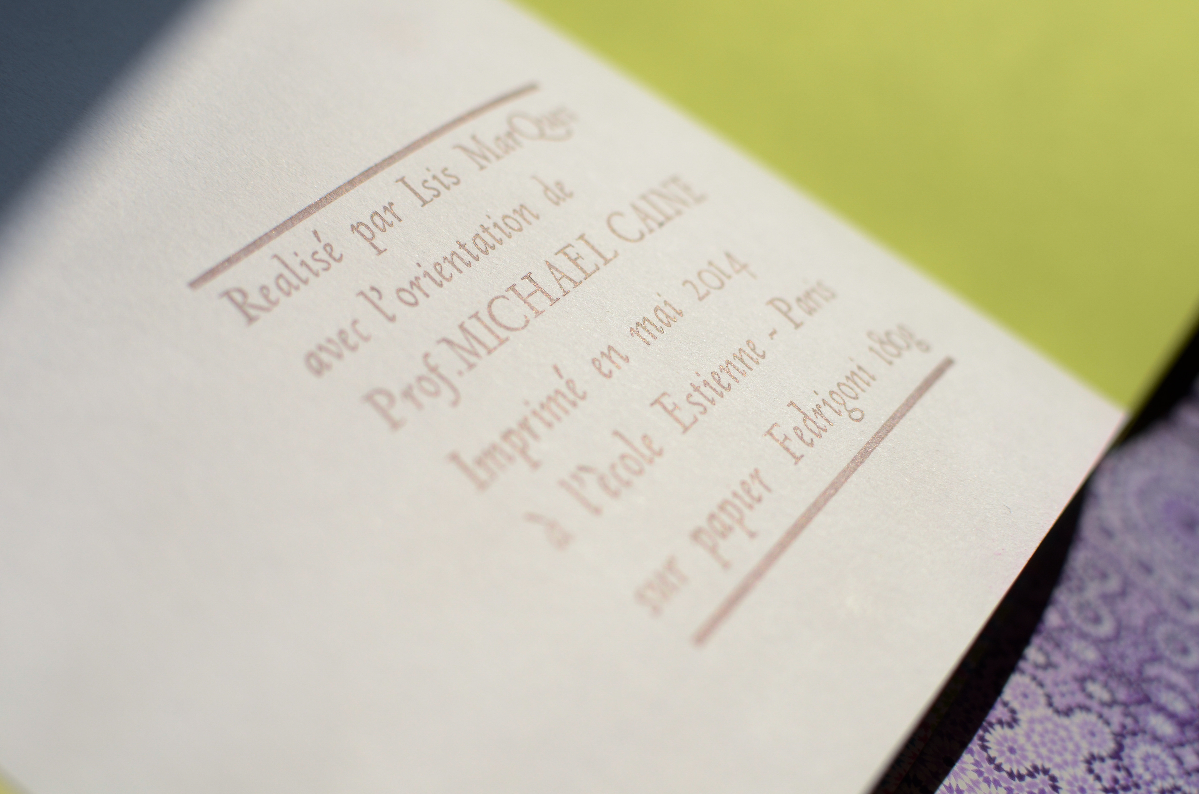 2014, Ecole Estienne Paris - orientation: Prof. Michael Caine