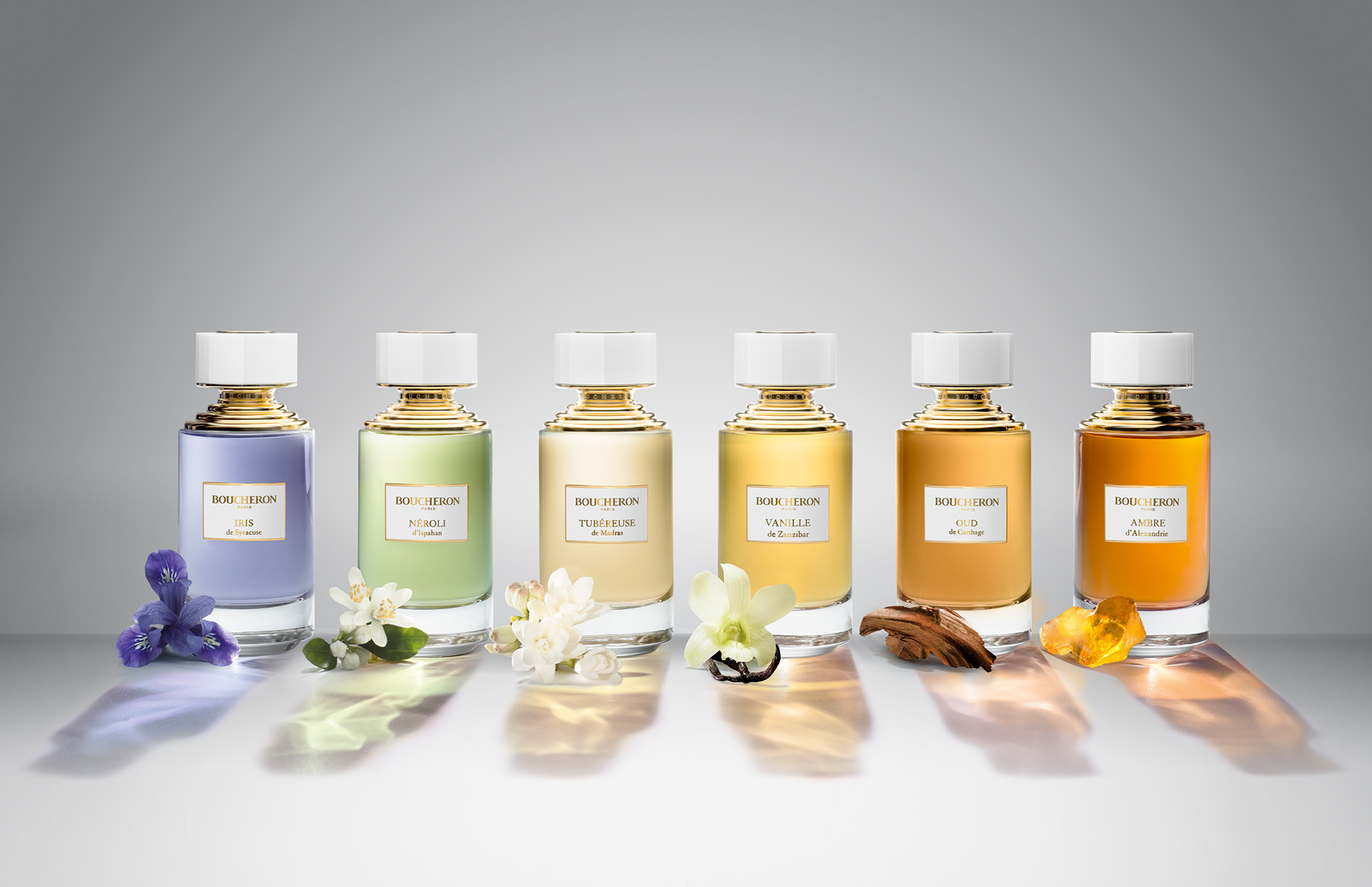 Inspired by the memories of the gem hunters, who forged the spirit of the brand through their travels, bringing from around the world their impressions, images, lights, encounters and scents, the Boucheron Collection brings together a scent palette colored by the landscapes all around the world.